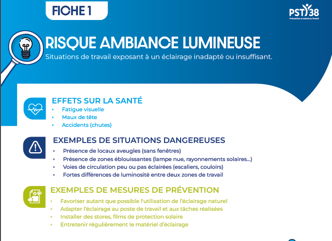 ⚠️ Le contenu des fiches de risques n’est pas exhaustif (effets sur la santé, exemples de situations dangereuses, exemples de mesures de prévention) : à partir de l’analyse des postes de travail, de l’écoute des salariés, en fonction des risques propres à l’entreprise, ces fiches pourront être approfondies.