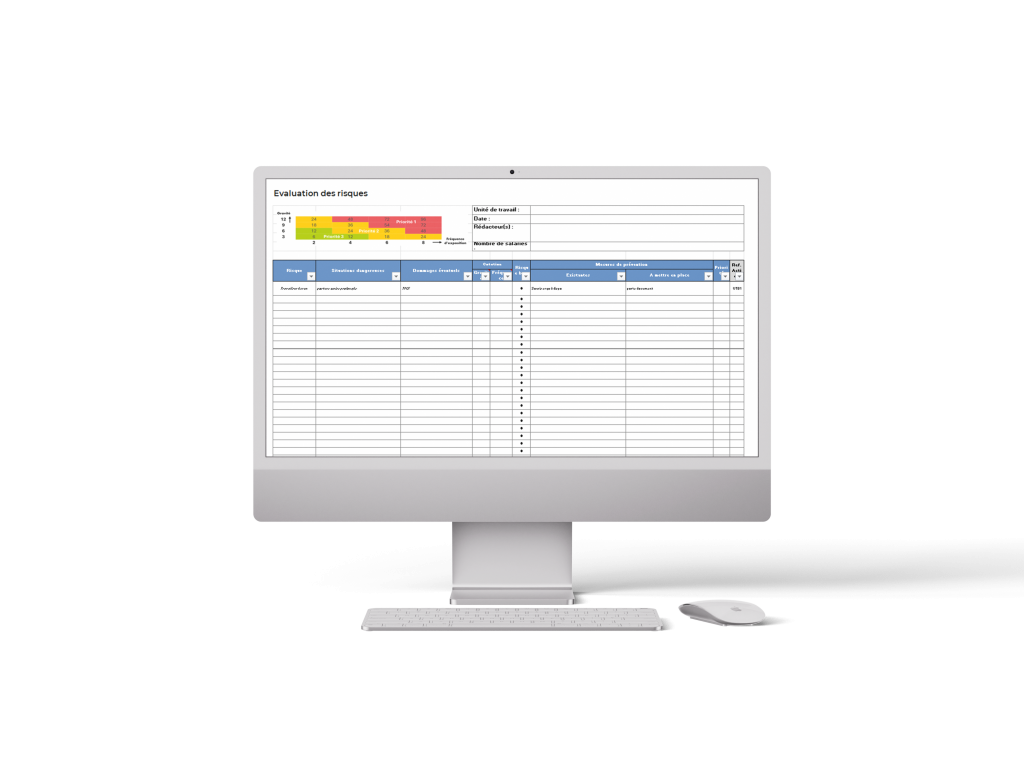 Une trame conçue par les équipes de PST38 pour vous aider à identifier, évaluer et suivre les risques professionnels de votre entreprise. Simple d’utilisation, il peut être personnalisé en fonction de vos besoins.
