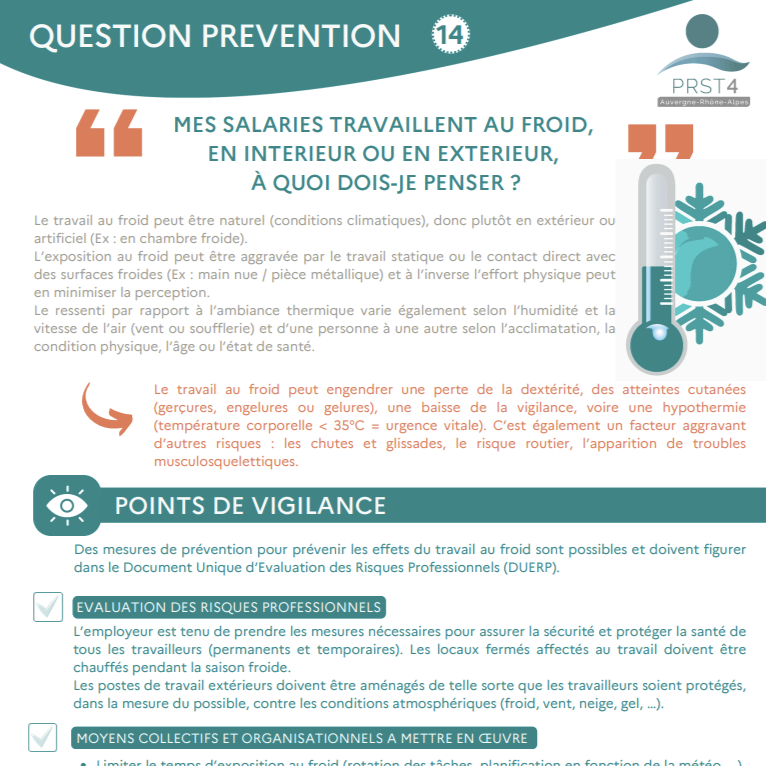 • Limiter le travail sédentaire au froid.